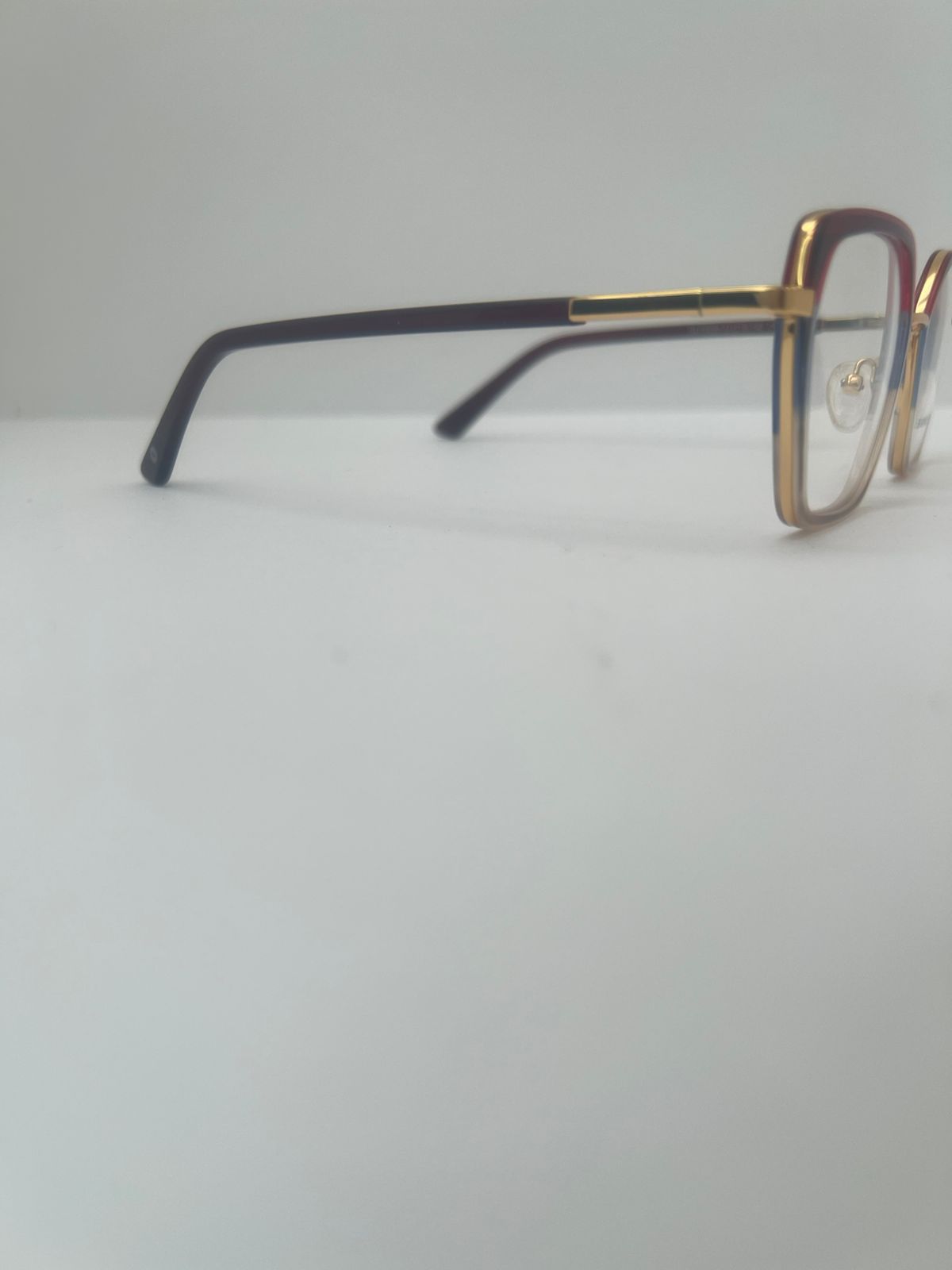 De color rojo, azul y dorado, cuenta con las medidas 51-19-140 de material acetato y metal
